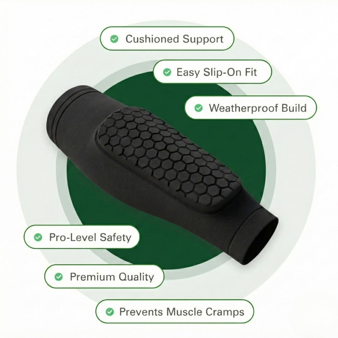 SkiGuards Elite uses a soft compression sleeve paired with a flexible gel core that molds to your leg, providing a snug, irritation-free fit.